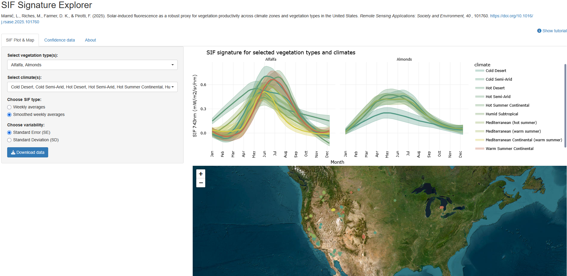 Satellite-measured solar induced fluorescence can be used as a proxy for plant productivity across various climates and plant types. Curious how it holds up for a certain climate or vegetation? Check out the interactive application developed by Luka Mamić (Sapienza University of Rome) and read the paper in Remote Sensing Applications: Society and Environment (2025).